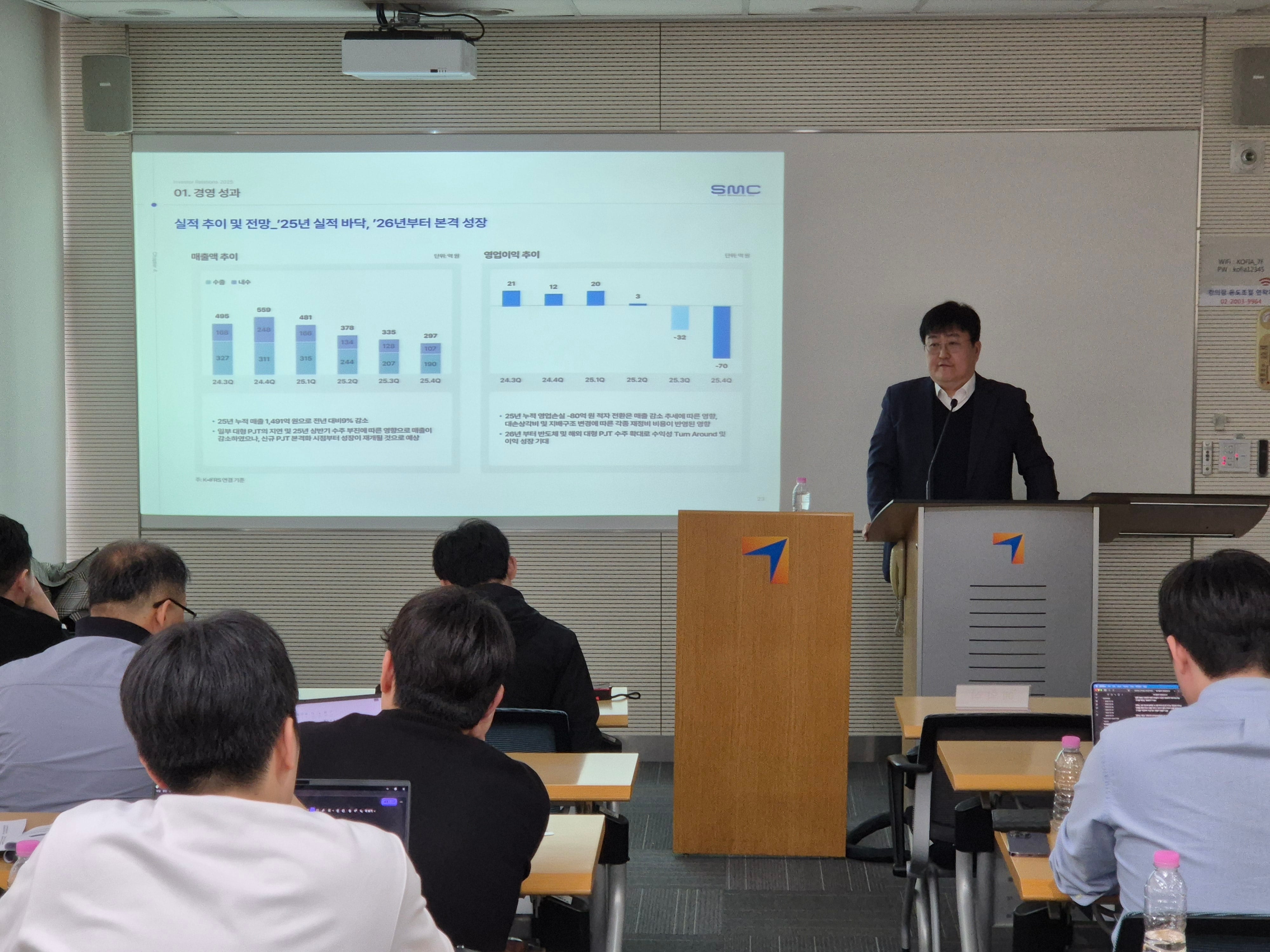 코스닥 상장사 에스엠코어가 반도체 물류 자동화 및 로보틱스 분야 경쟁력 확대에 속도를 내고 있음. 기존 반도체 공정 물류와 일반 물류 자동화를 넘어 로보틱스 업체로의 사업 재편을 추진 중임. 지난해 9월 SK그룹에서 분리되어 스마트팩토리 설루션 업체인 엠투아이에 인수된 바 있음.