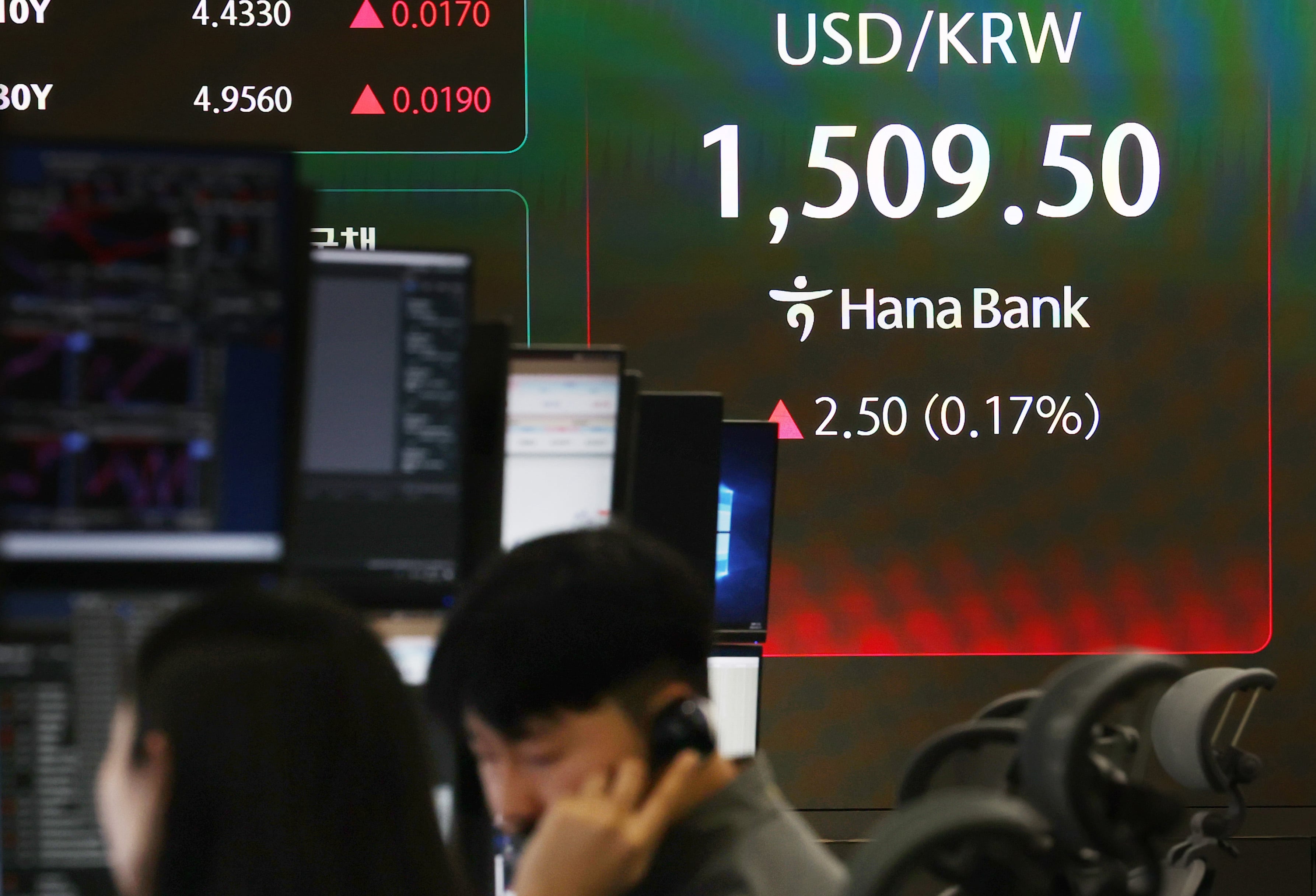 원화 환율 1490원 근접, 역대 4위…외국인 매도로 주요국 중 최하락